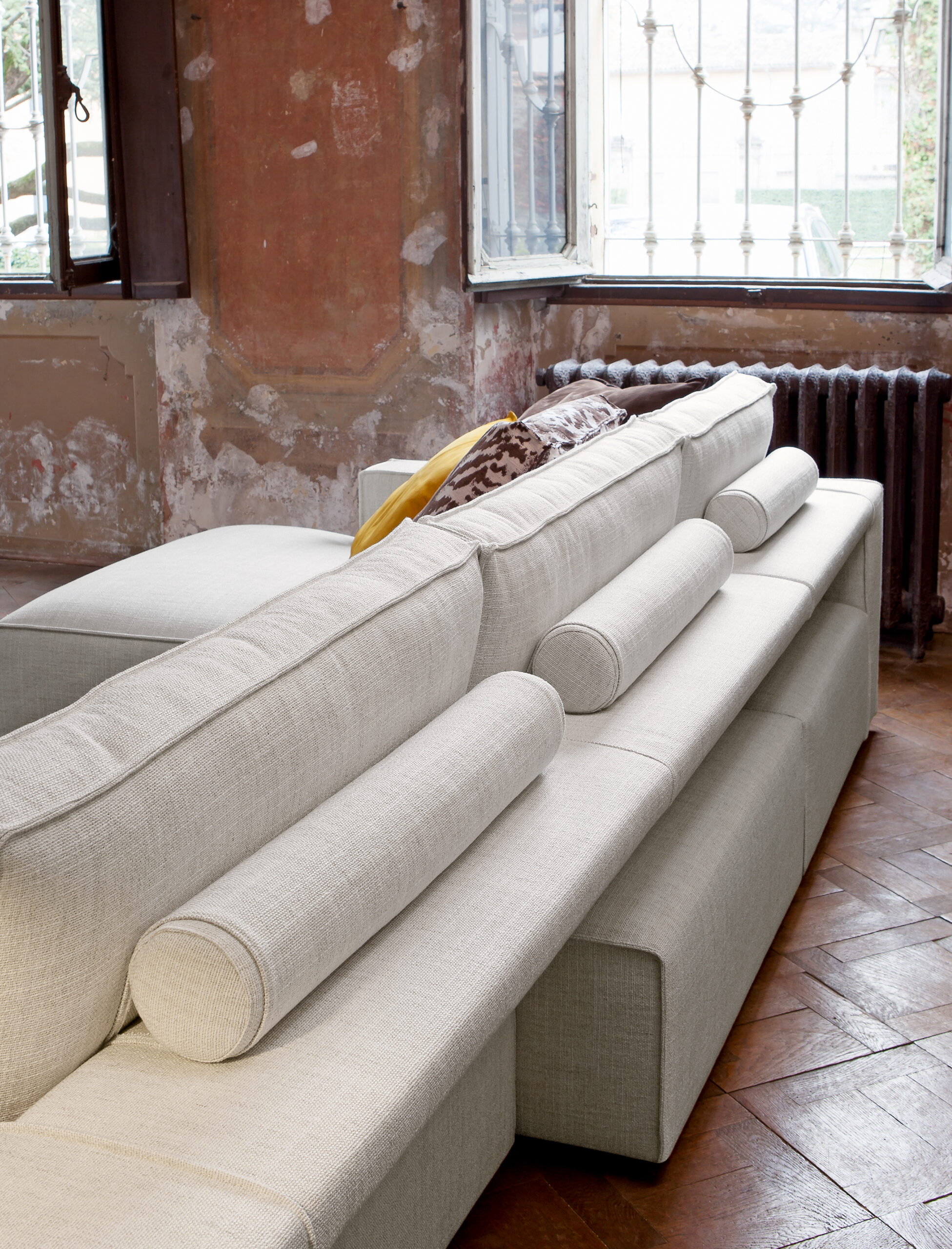 Durch seine durchdachte Konstruktion bietet das Sofa eine angenehme Balance aus weicher Polsterung und stabiler Unterstützung.